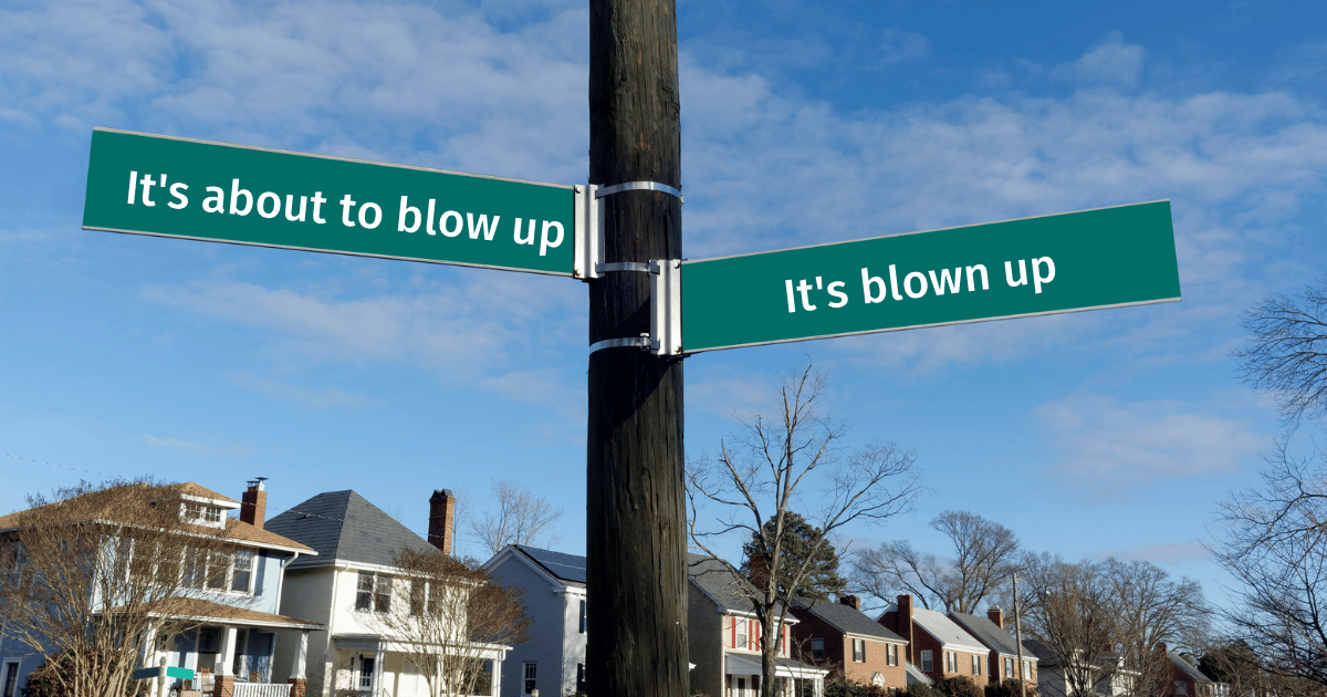 Most new clients call me when they are at the corner of, “I think everything is about to blow up” and “Everything has blown up.”