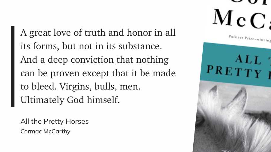 2) A passage from the late Cormac McCarthy to remind you that most business books suck and great novels provide greater wisdom: