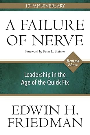1) A Failure Of Nerve: Leadership in the Age of the Quick Fix by Edwin Friedman — applies family systems theory to leadership, arguing that leaders in an anxious, "quick-fix" society must develop self-differentiation (remaining calm and clear) rather than relying on data, empathy, or popularity to lead effectively.